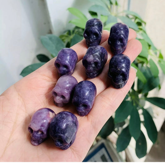 Natural Lilac Stone aka lepidolite gemstone Mini-skull Crystal Figurine