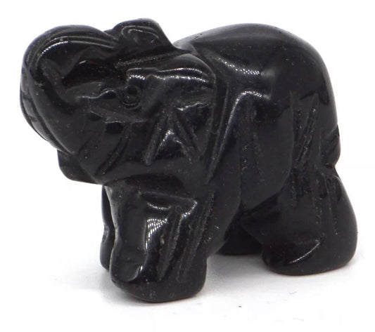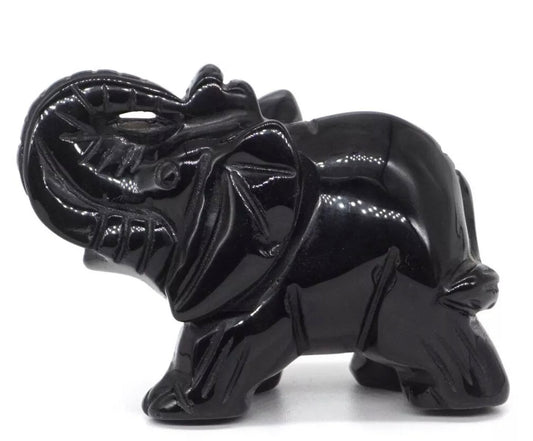 Natural Black Obsidian gemstone carved 3 inch Elephant
