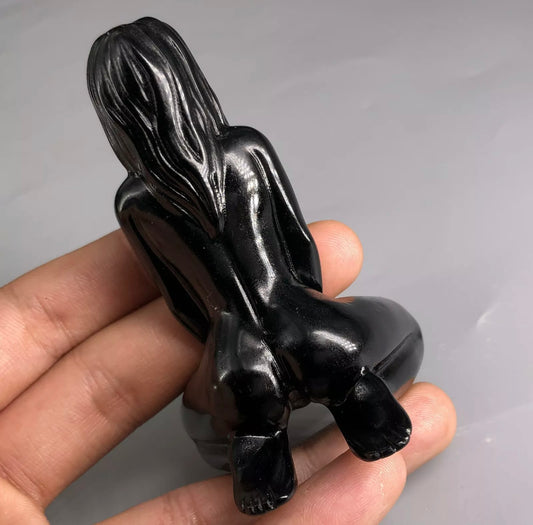 Natural Obsidian gemstone carved Yoga Goddess LLP