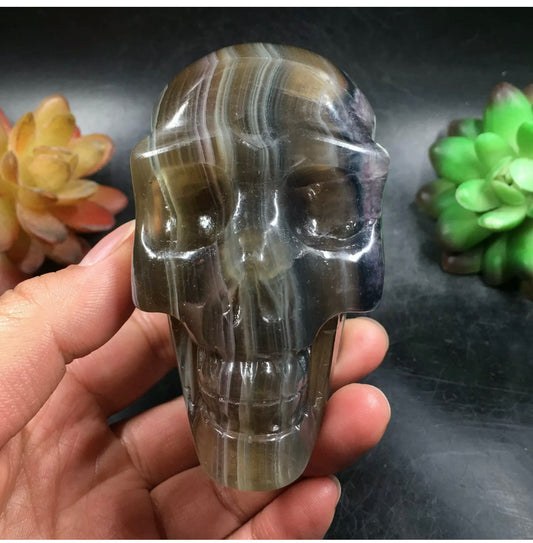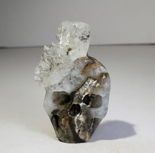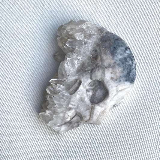 Natural crystal, quartz cluster, mineral specimen, hand carved, skull