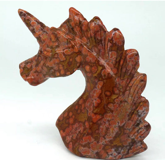Leopard Jasper Unicorn Head Figurine Natural Gemstone Ornament Statue
