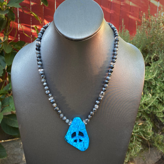 Howlite Peace Sign, Black Labradorite, and Clear Quartz w/ Sterling Silver Clasp