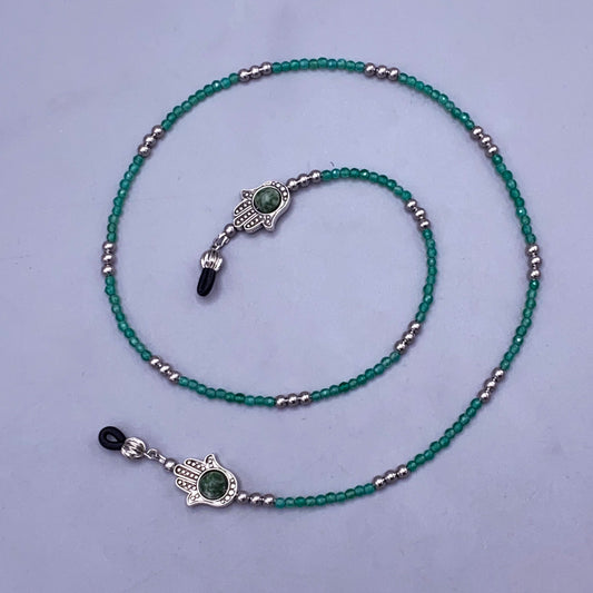 Green Aventurine Gemstone and Hamsa Beaded Eyewear Keeper