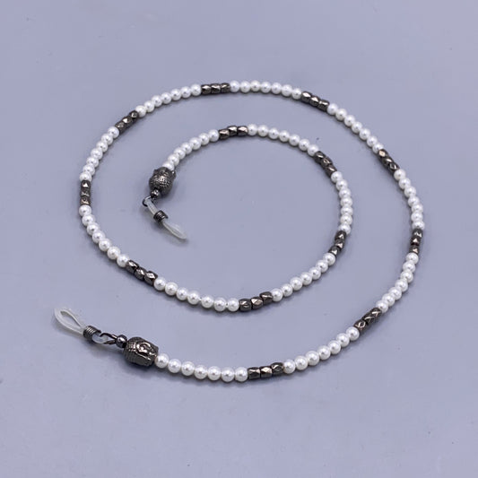 Pearl and Silver Peace Sign Pendant beaded necklace