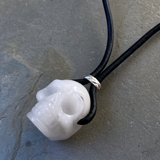 Genuine Gemstone Skull with Sterling Silver on genuine Leather Necklace