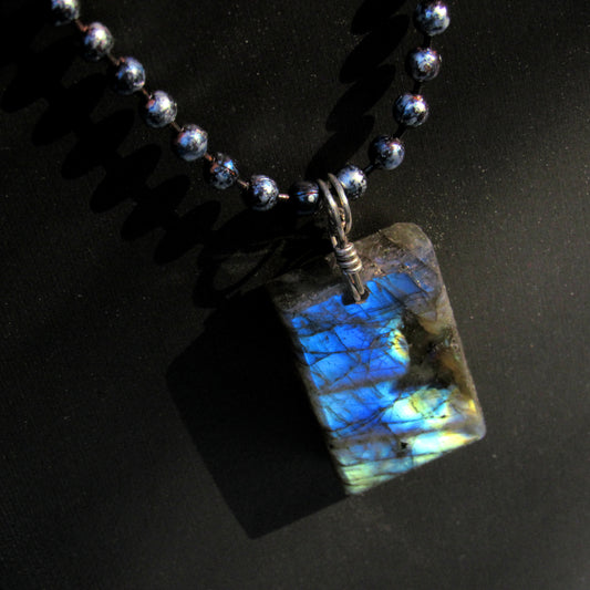 Labradorite Hand Wrapped With Sterling Silver on Hand Patina Copper Ball Chain