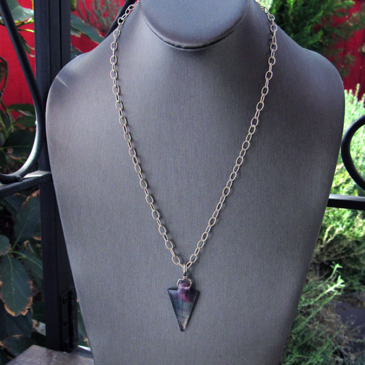Unisex Fluorite Gemstone Arrowhead on Sterling Silver Chain
