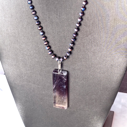 Men’s Sterling Silver Hand Wrapped Fluorite in Hand Patina Painted Copper Chain