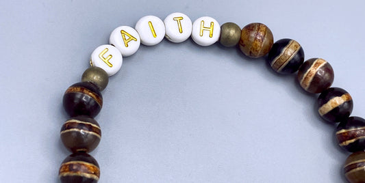 Unisex Tibetan Agate and Hematite Gemstone Buddha “FAITH” Bracelet
