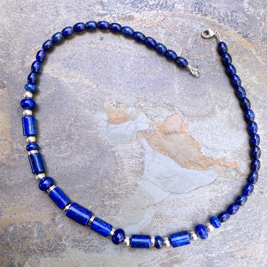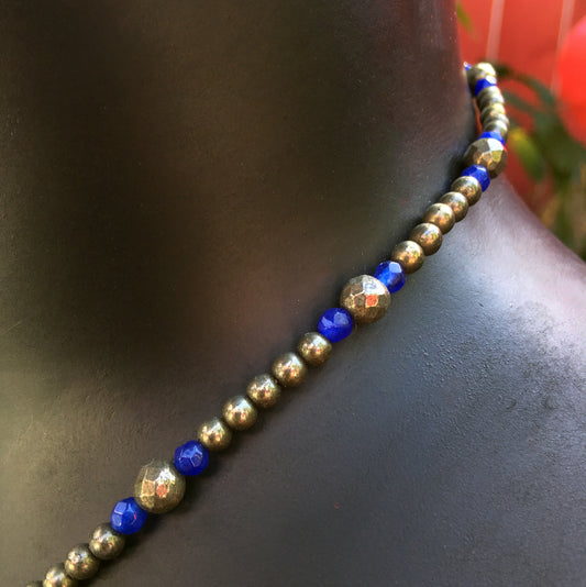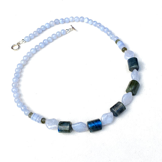 Men's Gray Labradorite with Blue lace agate Gemstone necklace