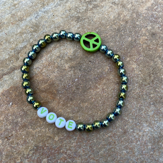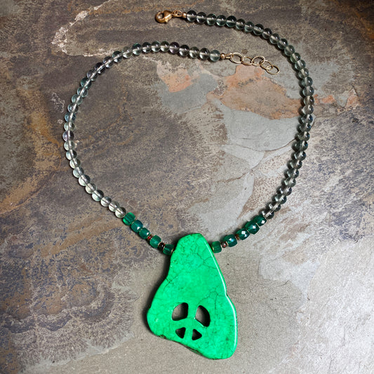 Green Howlite Peace Pendant, Green Onyx, Black Opals and Fluorite Gemstones
