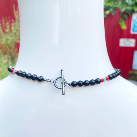 Unisex Agate moon on Onyx, Red Agate, Blue Topaz Gemstone Necklace