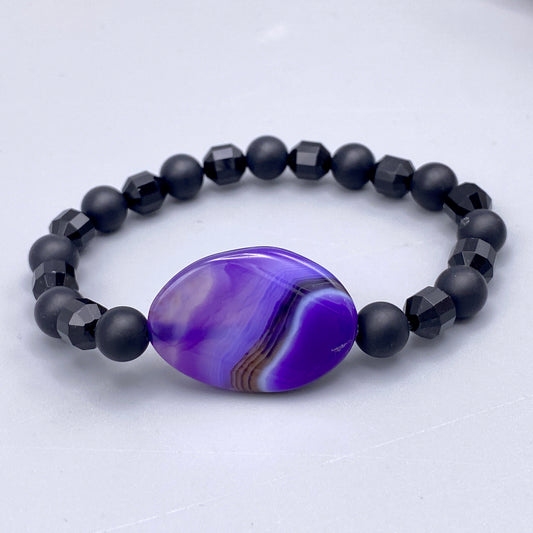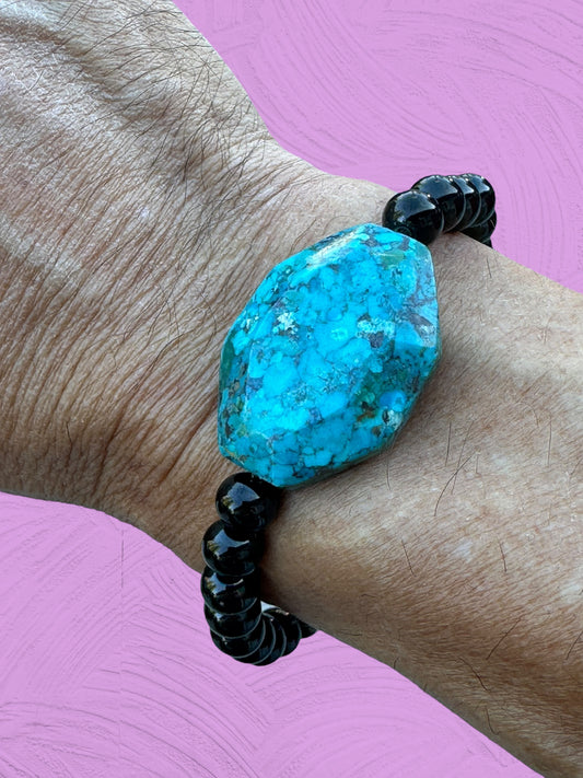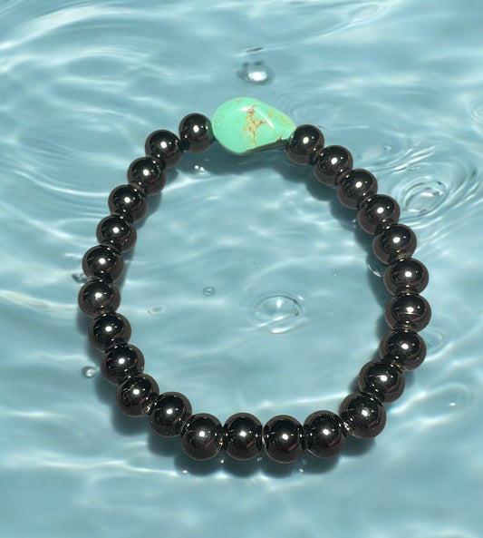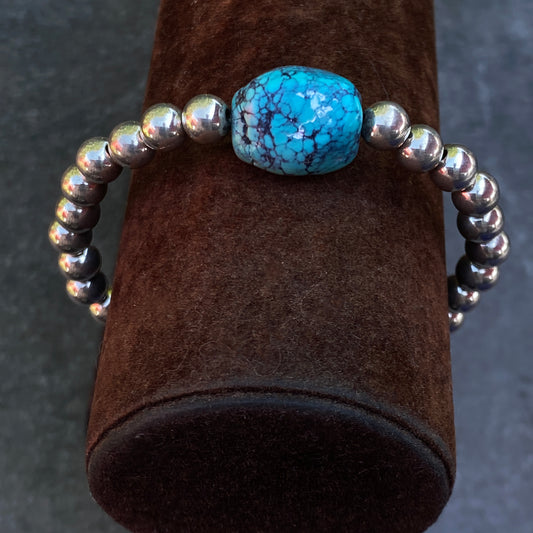Turquoise and Stainless Steel Beaded Stretch Bracelet