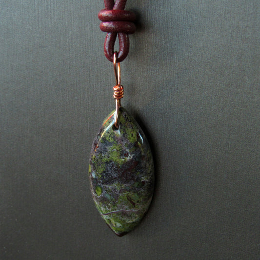 Dragon’s Blood Jasper gemstone on Leather Necklace