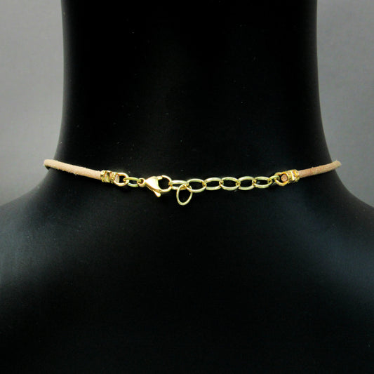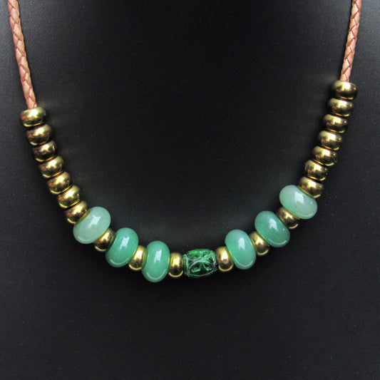 Jade gemstone, Aventurine, and Brass on genuine leather Necklace