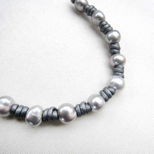 Women’s Genuine Freshwater Pearl and Tibetan Agate Gemstone Yin Yang leather bracelet