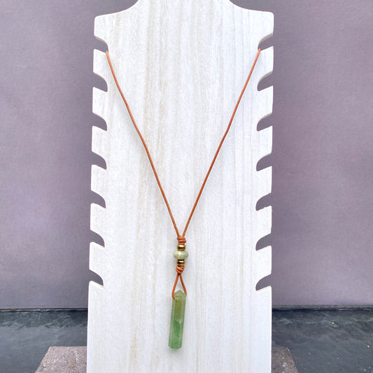 Aventurine gemstone wand pendant with Brass on Leather Necklace
