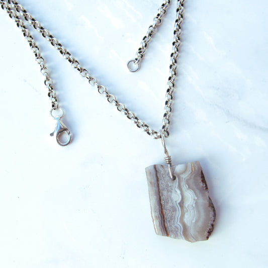 Crazy Lace Agate gemstone on Sterling Silver Chain