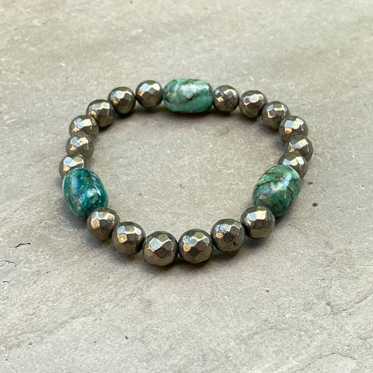 Chunky Faceted Pyrite and Chysoprass Stretch Bracelet
