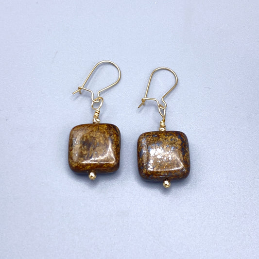 Bronzite Gemstone and 14 kt gf Drop Earrings