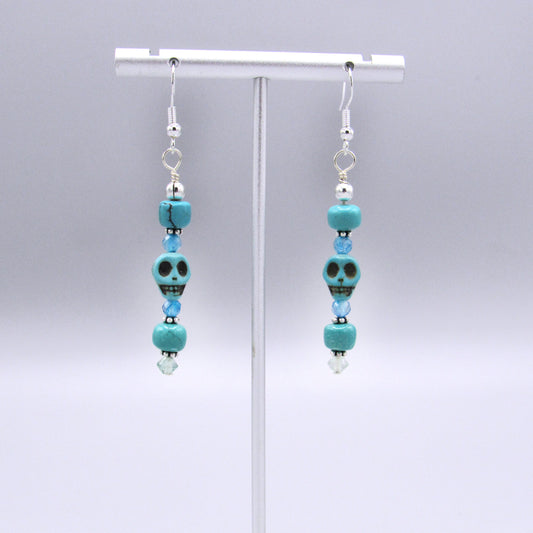 Howlite Skull, Genuine Turquoise, Apatite, Fluorite Gemstones Drop Earrings