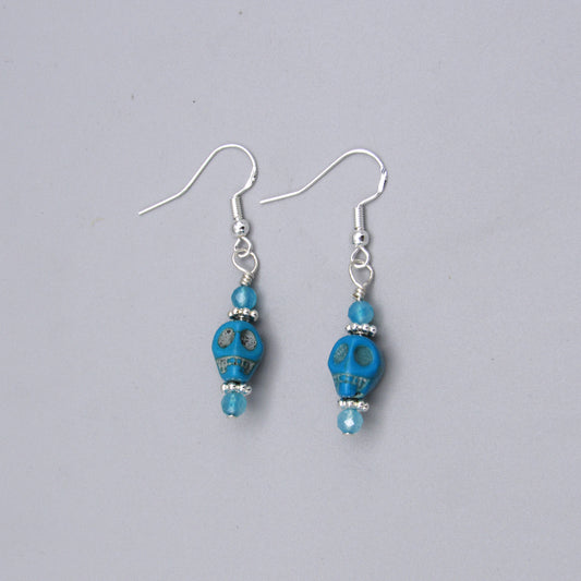 Howlite Gemstone Skull, Apatite, Sterling Silver Drop Earrings