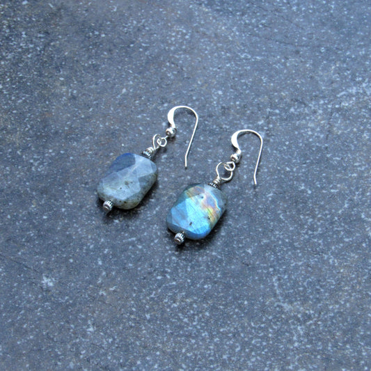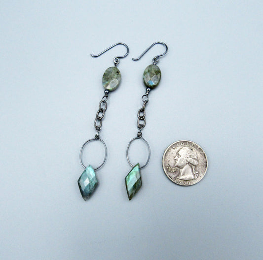 Labradorite and Oxidized Sterling Silver Chain Drop Earrings