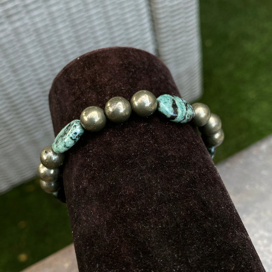 Green Onyx Hearts and Turquoise Stretch Bracelet