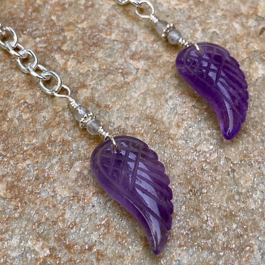 Amethyst, Labradorite gemstone, and Sterling Silver Wing Drop Earrings