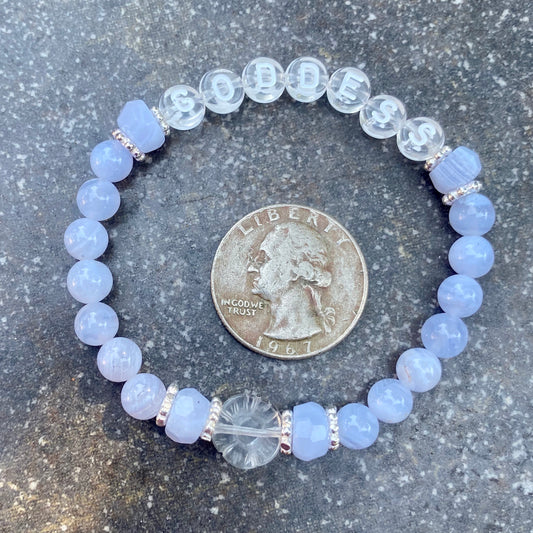 Blue Lace Agate “Goddess” and Clear Quartz W/ Sterling Silver