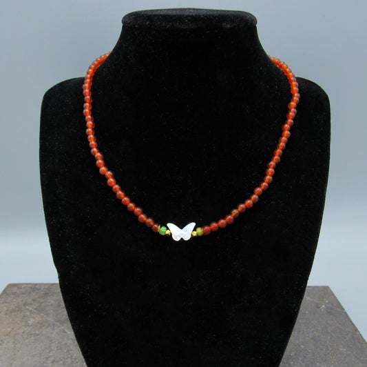 Mother of Pearl Butterfly, Red Onyx gemstone, and Ethiopian Fire opals w/ 14 kt gf Components