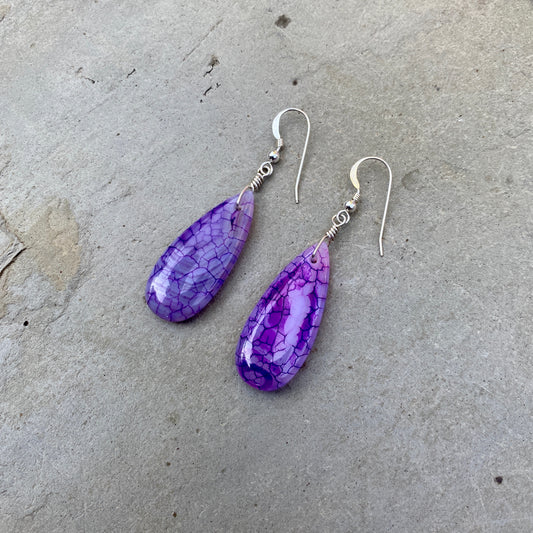 Purple Dragon’s Vein Fire Agate & Sterling Silver Earrings