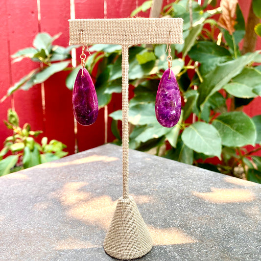 Purple Lepidolite Drop Earrings w/ 14 kt Rose Gf