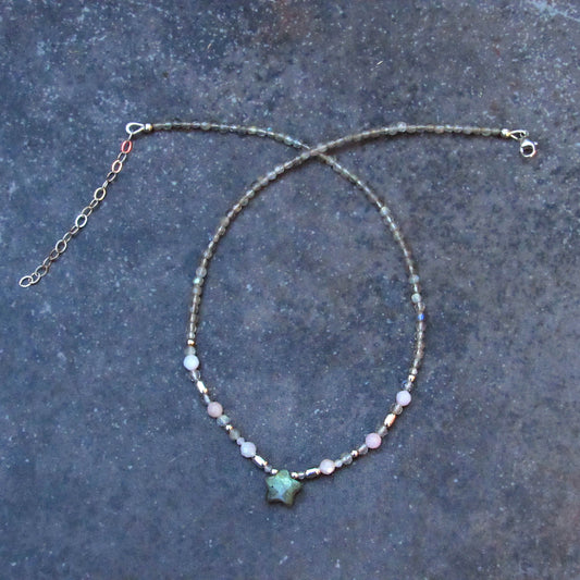 Labradorite Star and Pink Opal Sterling Silver Choker