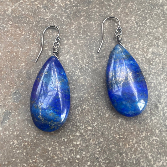 Lapis Lazuli Wrapped in Oxidized Sterling Silver Earrings