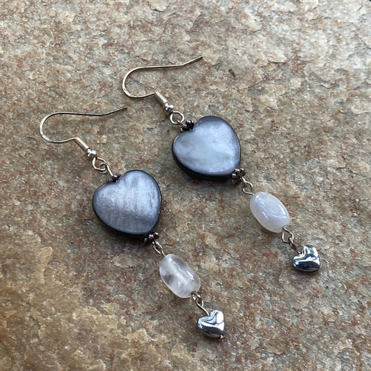 Mother of Pearl, Moonstone, Hematite, and Sterling Silver Drop Earrings