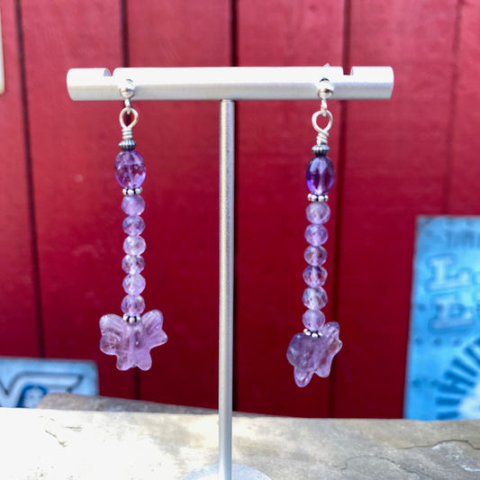 Amethyst Gemstone Bow Sterling Silver Post Earrings