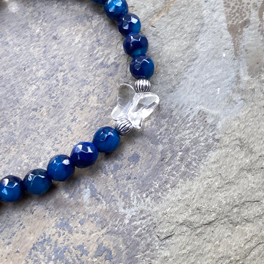 Blue Agate, Clear Quartz, and Sterling Silver “GODDESS” Stretch Bracelet