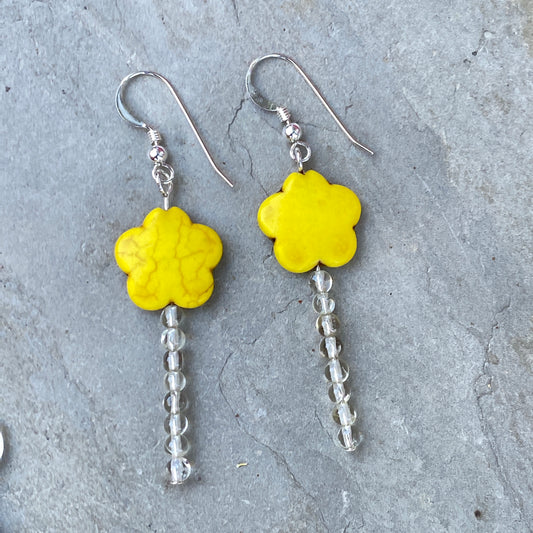 Howlite Peace Sign and Hematite gemstone Heart drop Earrings