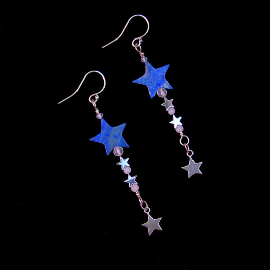Lapis Lazuli and Hematite Star Dangle Earrings