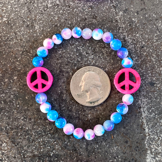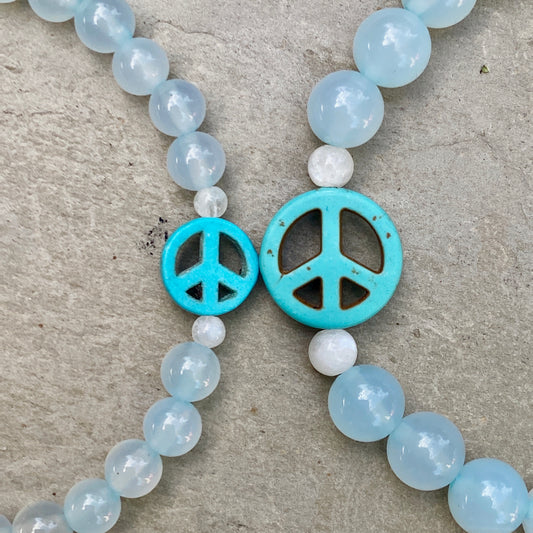 Blue Agate and Howlite Peace Sign Stretch Bracelet in Men or Women size