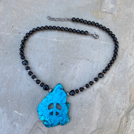 Howlite Peace Sign with Onyx Gemstones Necklace with Sterling Silver findings