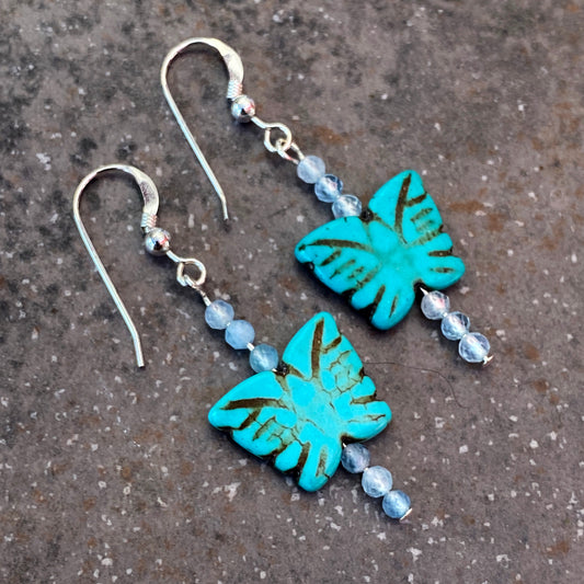 Women's Howlite Butterfly Earrings with Moonstones or Aquamarine Gemstones