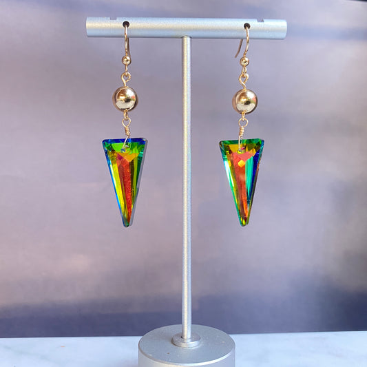Rainbow Titanium Crystal and 14 kt GF drop earrings