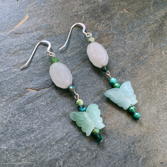 Aventurine Butterfly and Quartz Gemstone Earrings