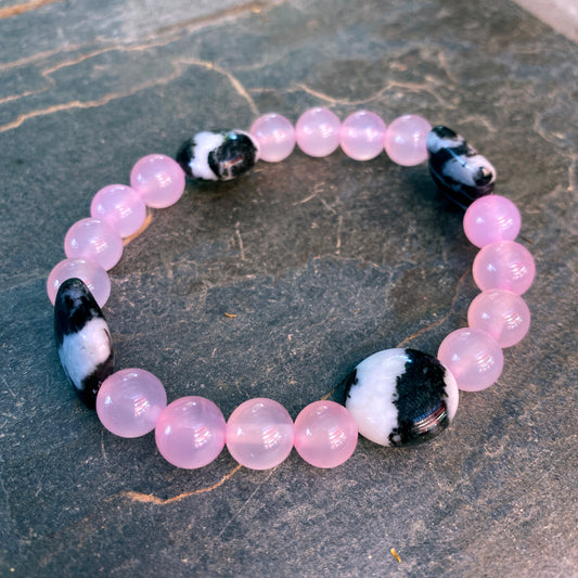 Women's Pink Agate and Zebra Jasper Gemstone bracelet