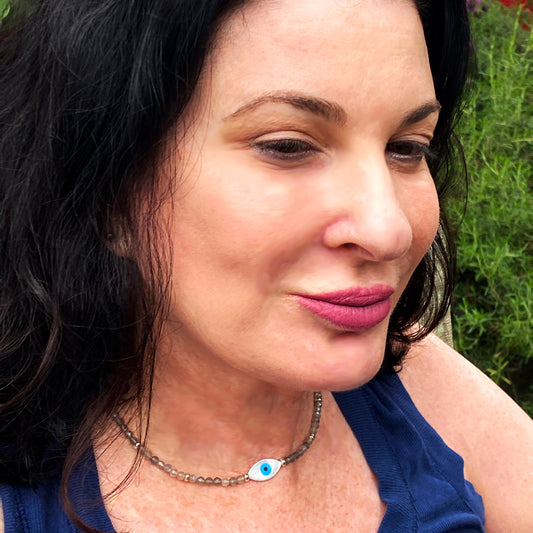 Women's Mother of Pearl Evil Eye Choker with Labradorite Gemstones & Sterling Silver