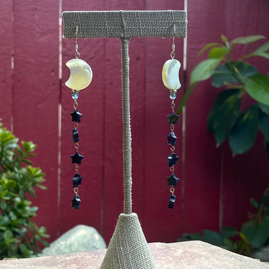 Mother of Pearl Moons & Dumortierite Star Gemstone drop earrings earrings