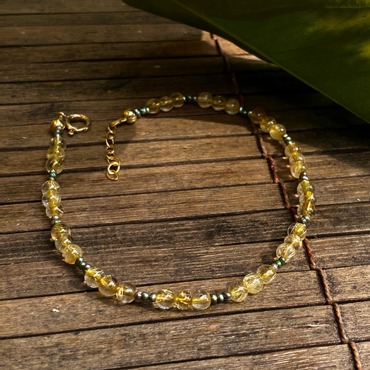 Golden Rutile Quartz Gemstone and fresh water Pearls Anklet