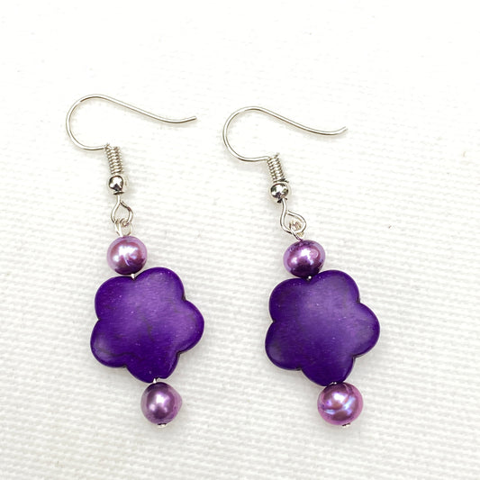 Mini howlite Flower and fresh water pearl drop earrings